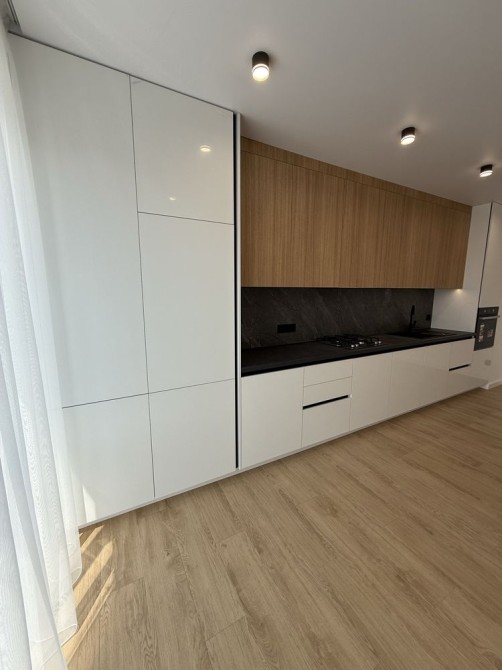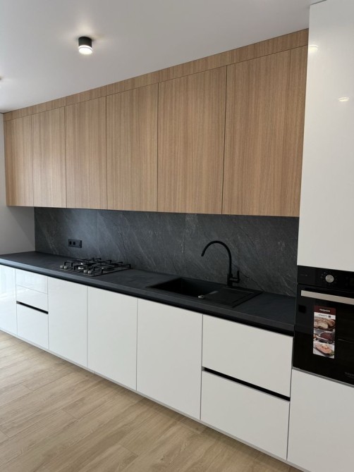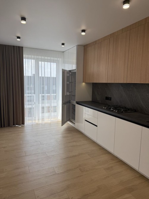 Кухня повністю укомплектована: нові меблі, сучасна техніка, вмонтований холодильник.