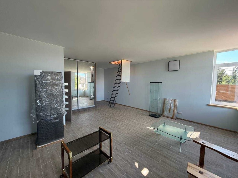 Пропонується сучасний будинок із новим ремонтом, гаражем та експлуатованою покрівлею, розташований у закритому охоронюваному містечку з двома вїздами через шлагбауми.