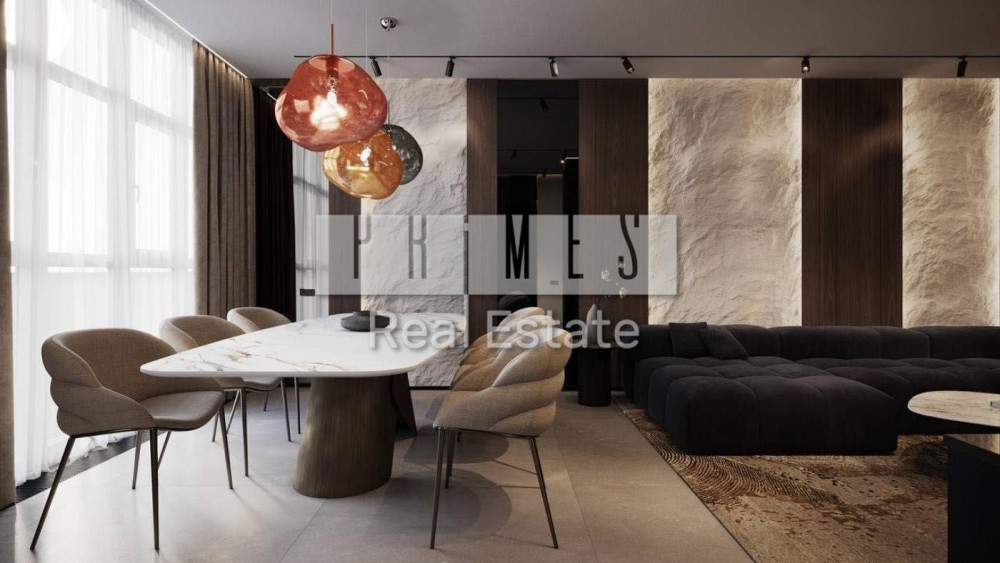 Квартира виконана за індивідуальним дизайн-проєктом, з використанням високоякісних матеріалів преміум-класу.