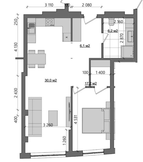- Однокомнатная
