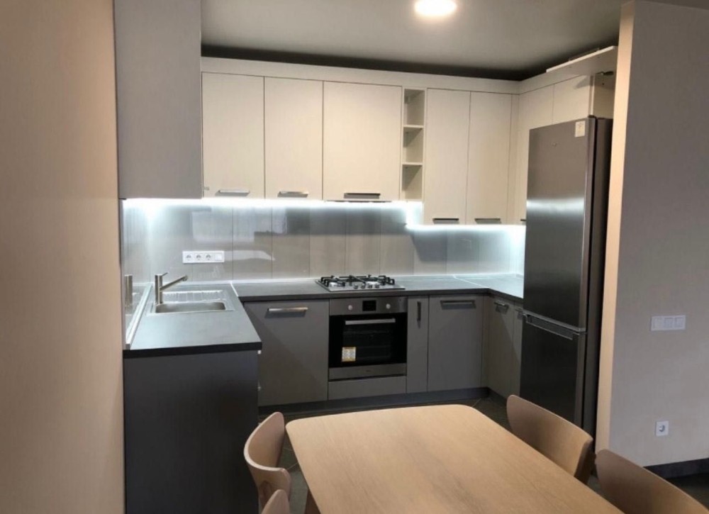 Студійна, тепла квартира (сьомий поверх), загальна площа 60 м2, з вентильованим фасадом, з індивідуальним опаленням, двоконтурним котлом та бойлером, усі підлоги з підігрівом.