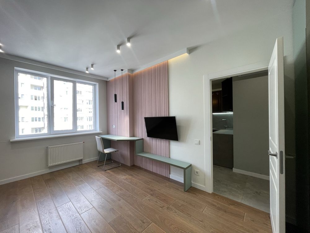 Продаж 1-к квартири вул. Кам'янська 128. м. Вирлиця 5 хв. Ремонт у світлих тонах, вікна підлоги, стелі 3 метри. Продаж з меблями та побутовою технікою. Гарний вид на Бажана проспект і озеро. Лічильник на тепло. Закрита територія. Поруч парк Партизанської Слави. 044 200 10 80