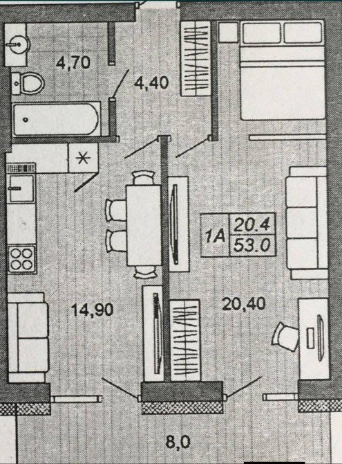 -Кімната: 20.4 м²