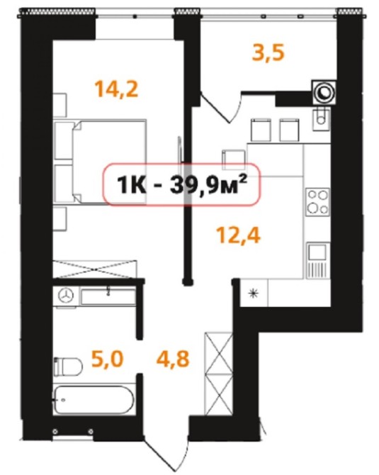 • Общая площадь 40 м2
