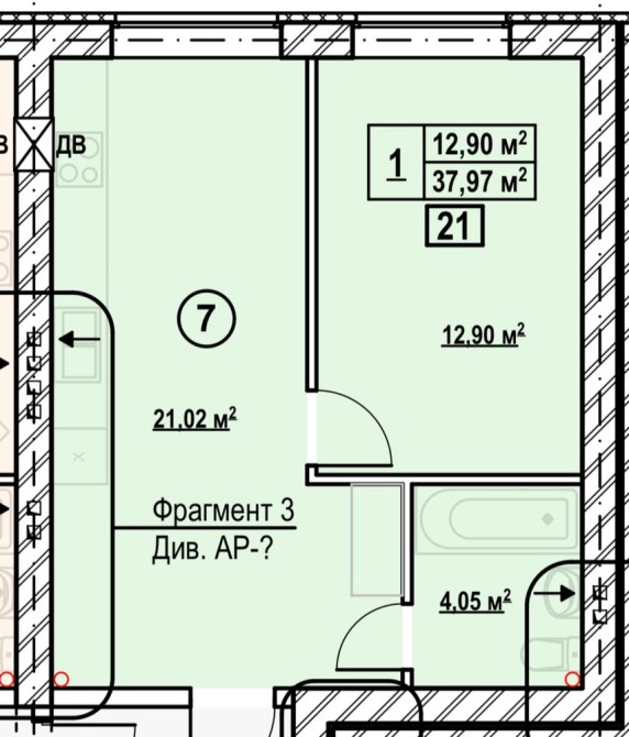 • Площадь кухни 21.02 м2