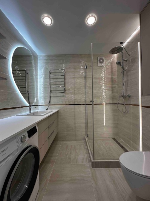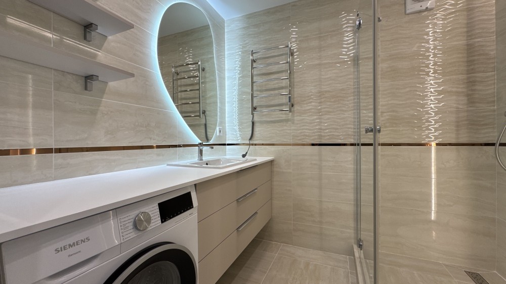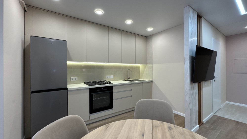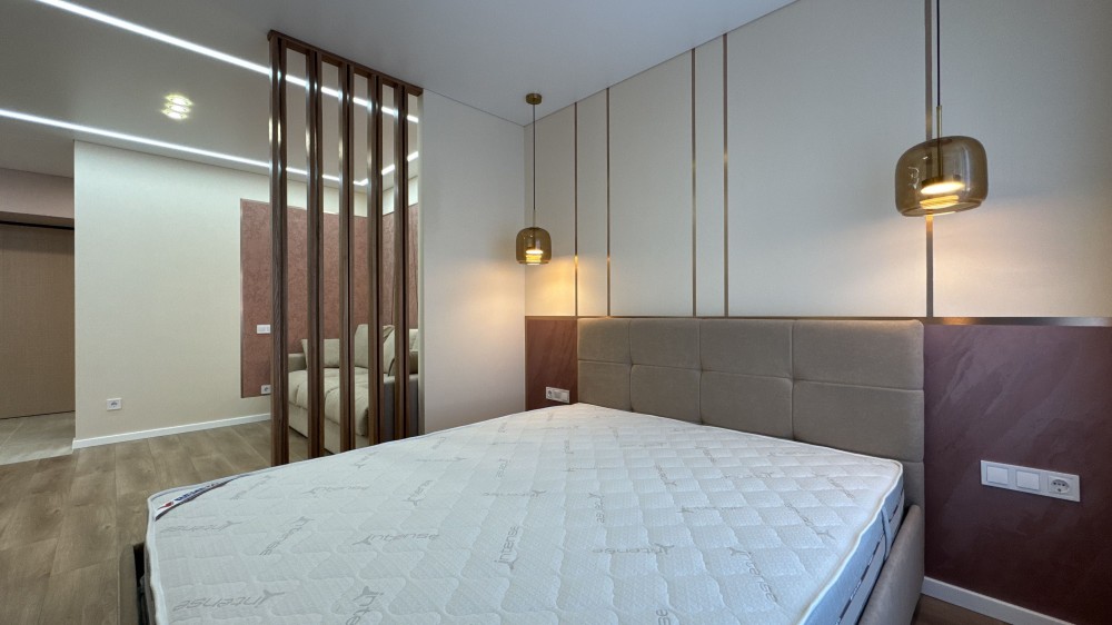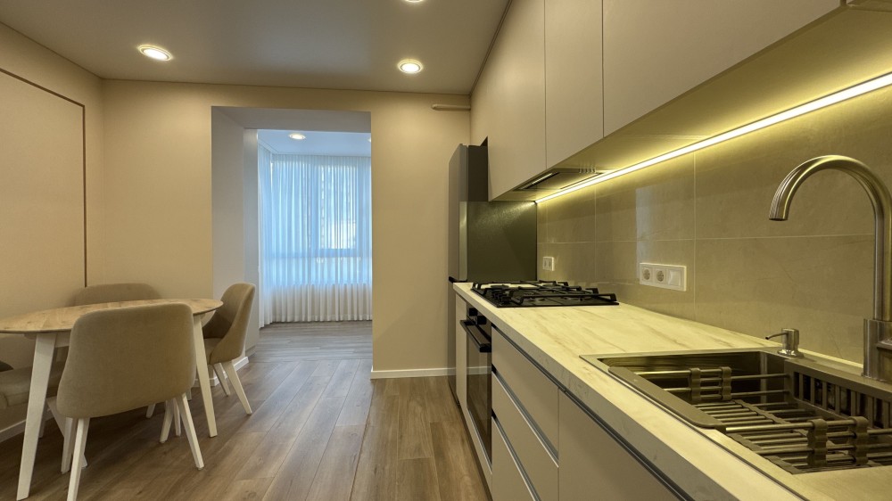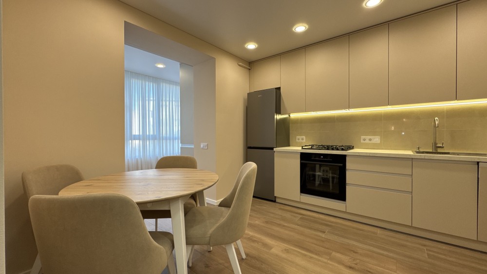 В квартирі зроблено ремонт з дорогих та високоякісних матеріалів. Повністю облаштована всіма необхідними меблями та технікою для комфортного проживання.