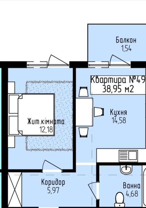 • Общая площадь 38.95 м2
