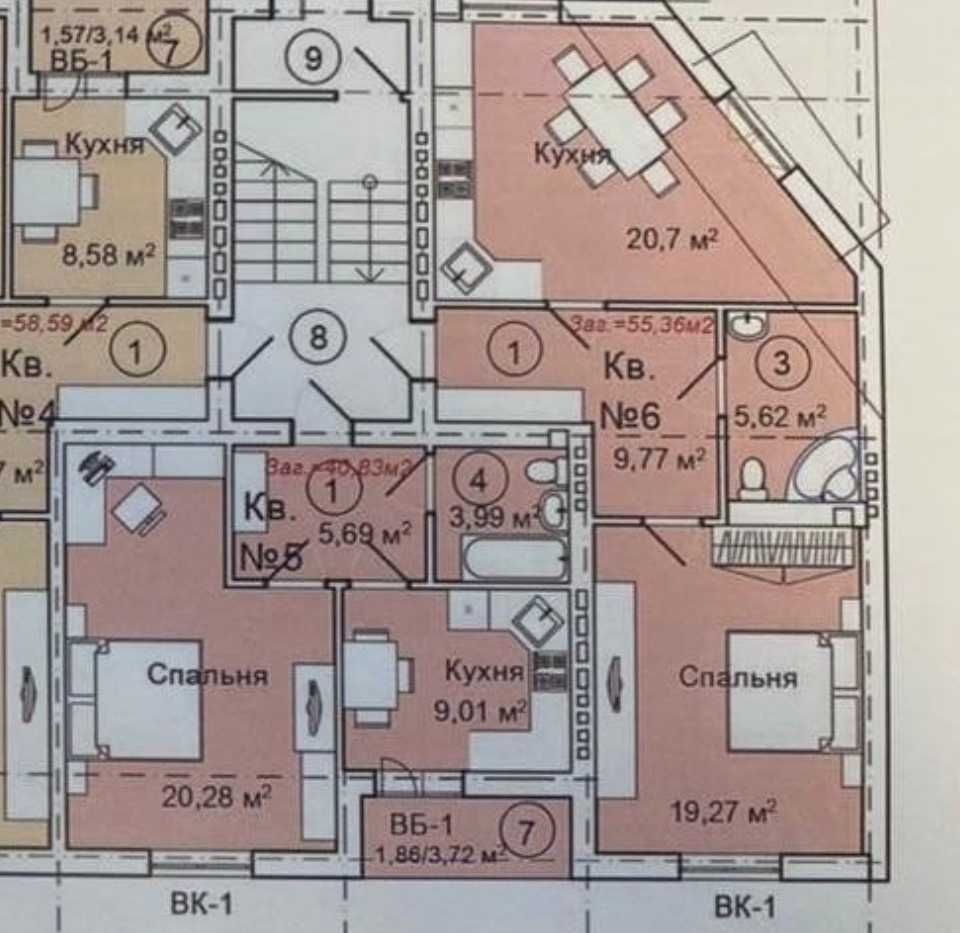 В наявності є дві квартири площею 55 м2.