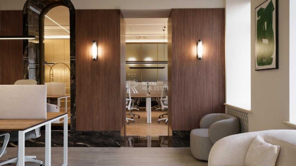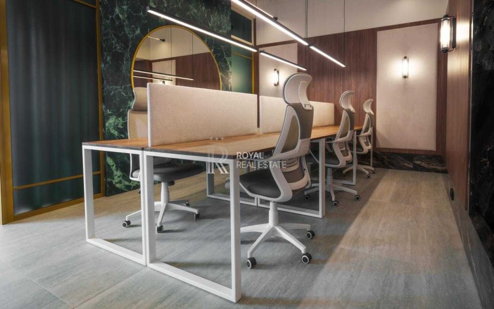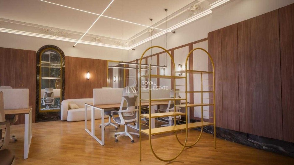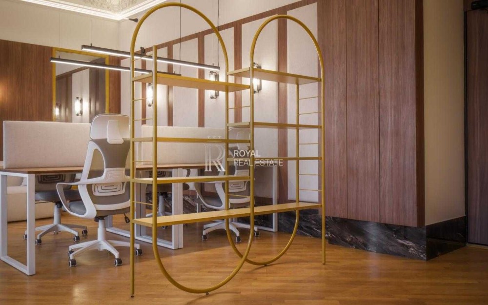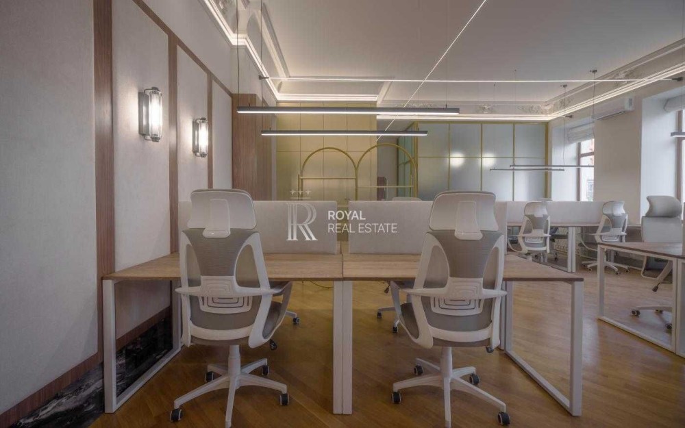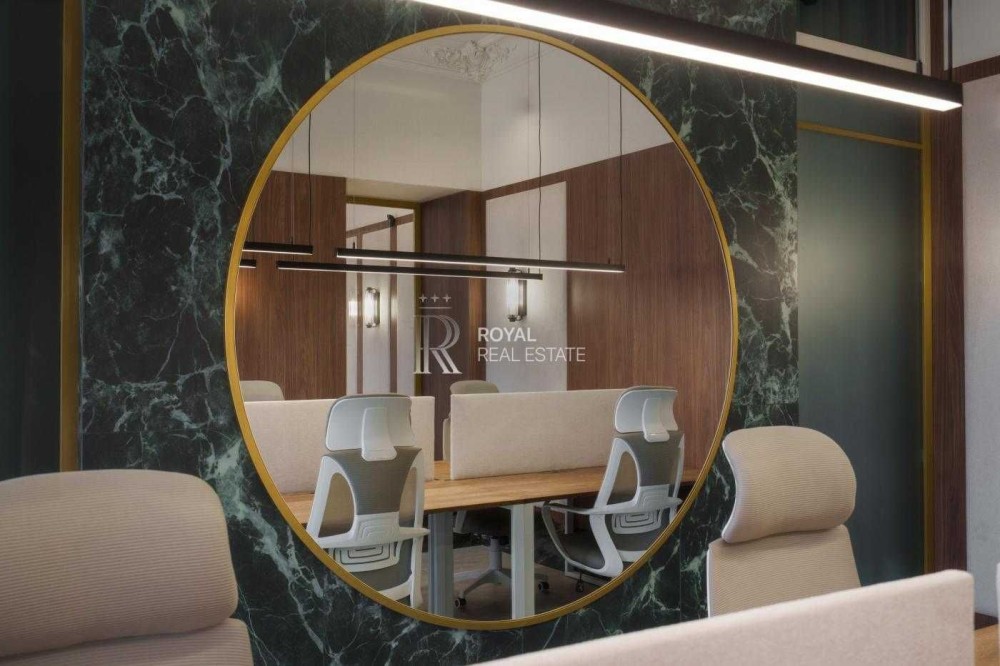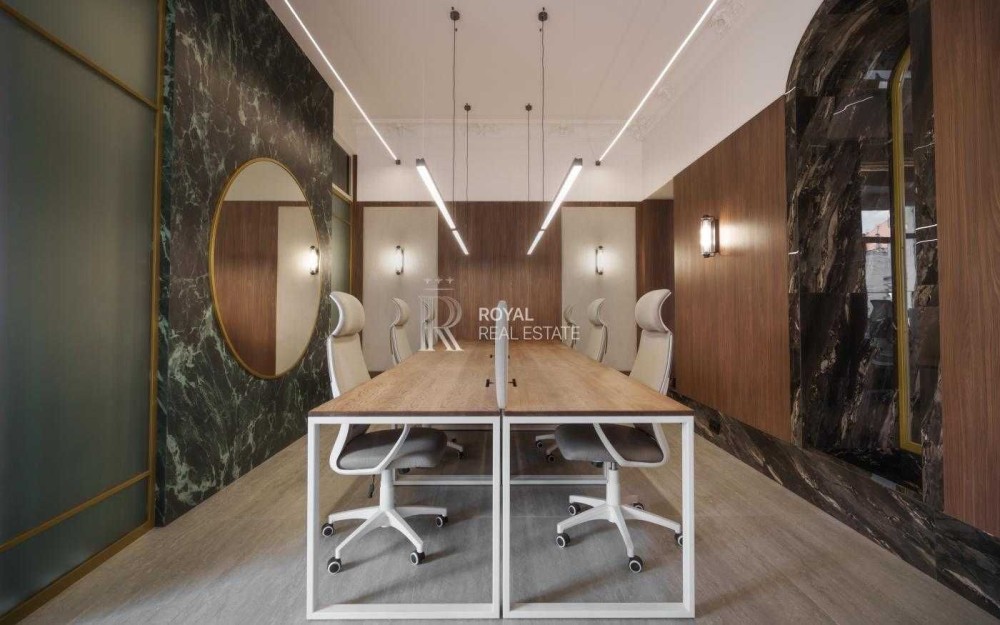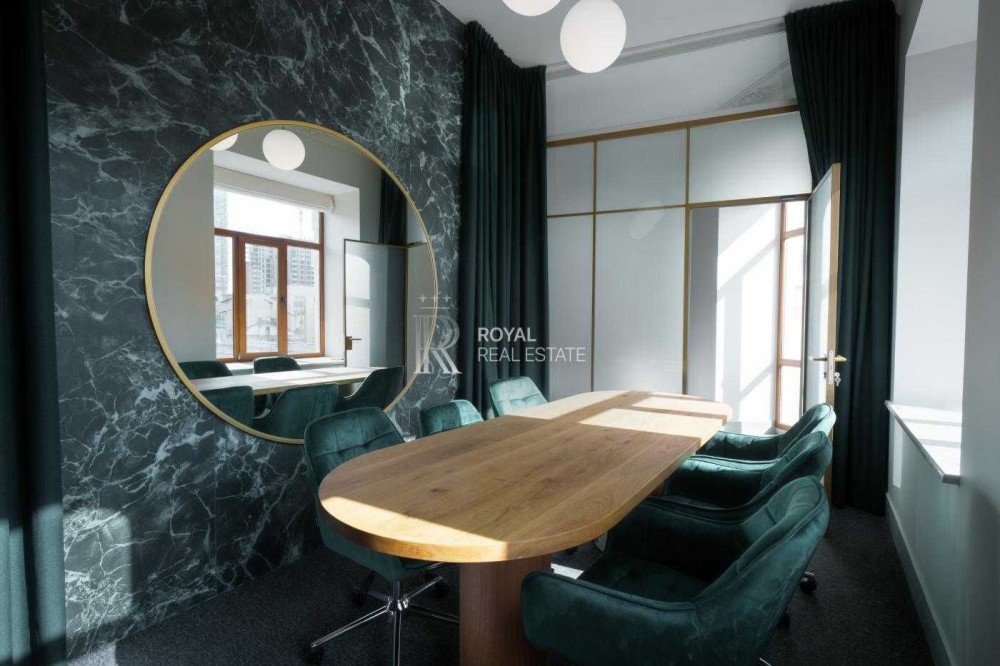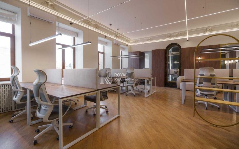 Офіс має сучасний дизайнерський ремонт із використанням якісних матеріалів. Великі панорамні вікна та високі стелі створюють відчуття простору й наповнюють приміщення природним світлом.