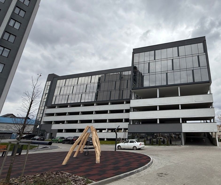 На паркінгом розташовуються 3 поверхи комерції (офіси та інше),