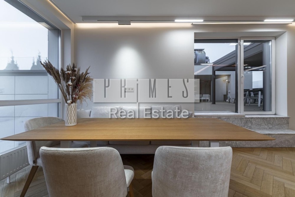 Главной изюминкой является терраса площадью 100 м² с невероятным панорамным видом на весь Киев. На террасе оборудованы джакузи и зона отдыха.