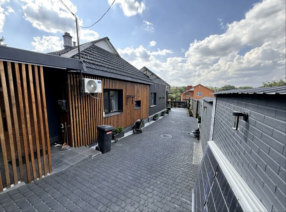 Окремий в'їзд та адреса. Також встановлені сонячні панелі 6 кіловат потужності, інвертор 10,2 кв, акумулятори 15 кв ємності.