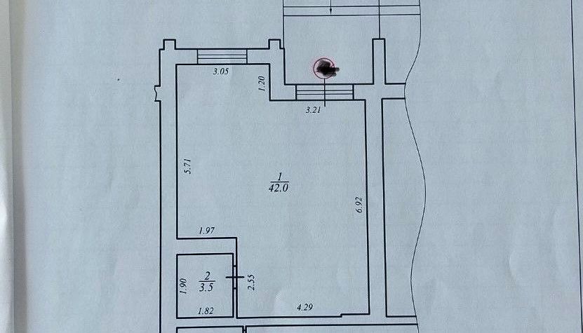 * торговий зал 42м, санвузол 3.5м