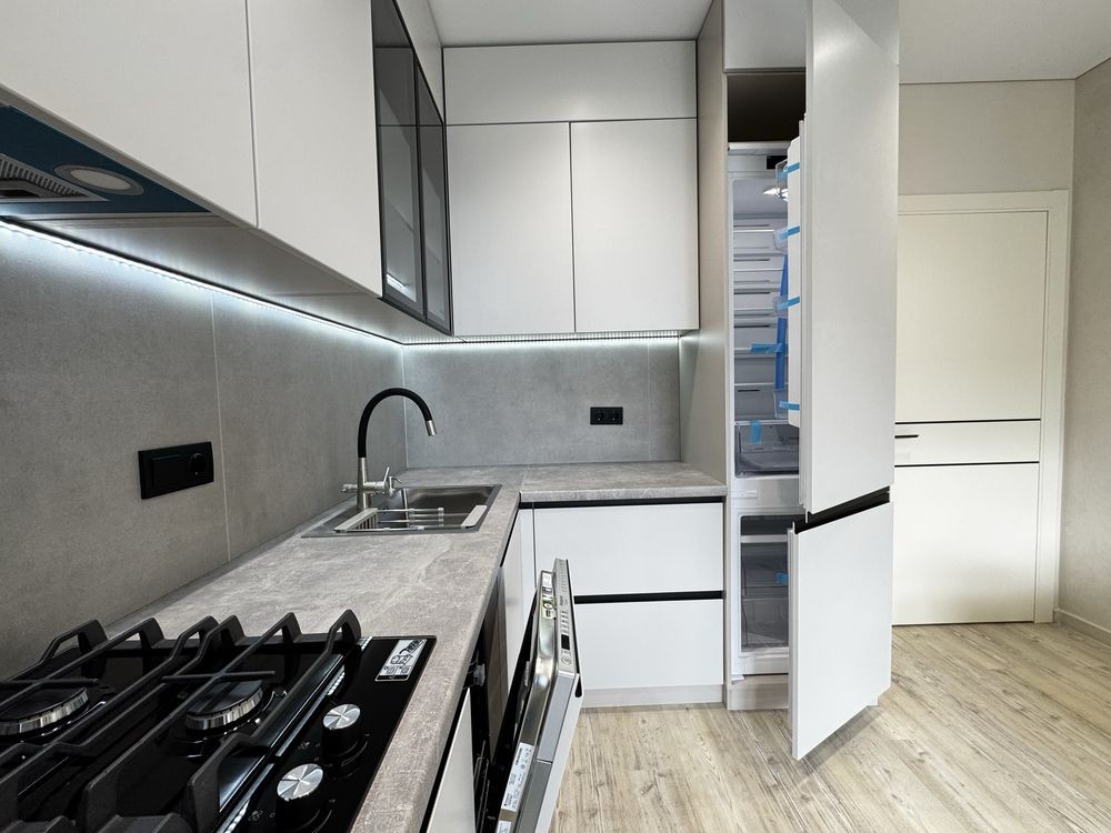• Встановлений кухонний гарнітур та побутова техніка — можна заїжджати одразу після покупки.