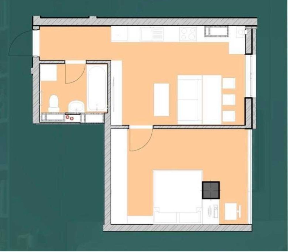 • Общая площадь 44 м2