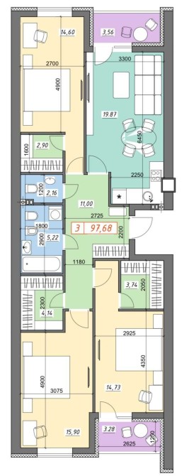• Общая площадь 97.68 м2