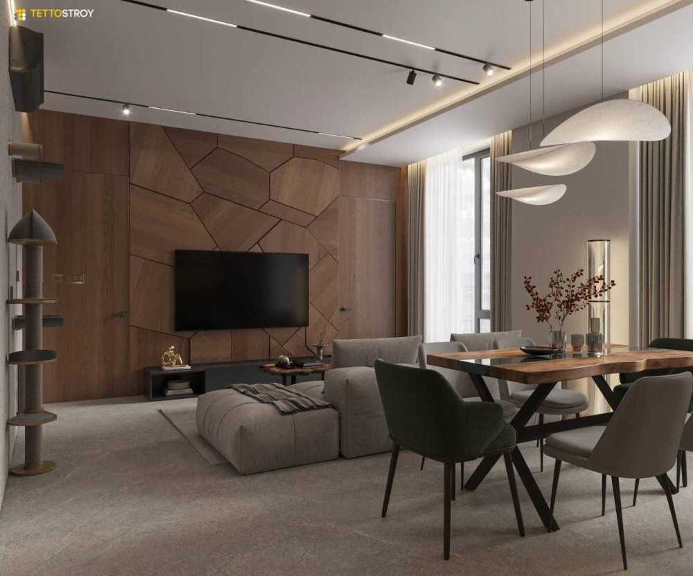 Площа — 97,68 м² — багато світла, повітря та можливостей для стильного зонування.