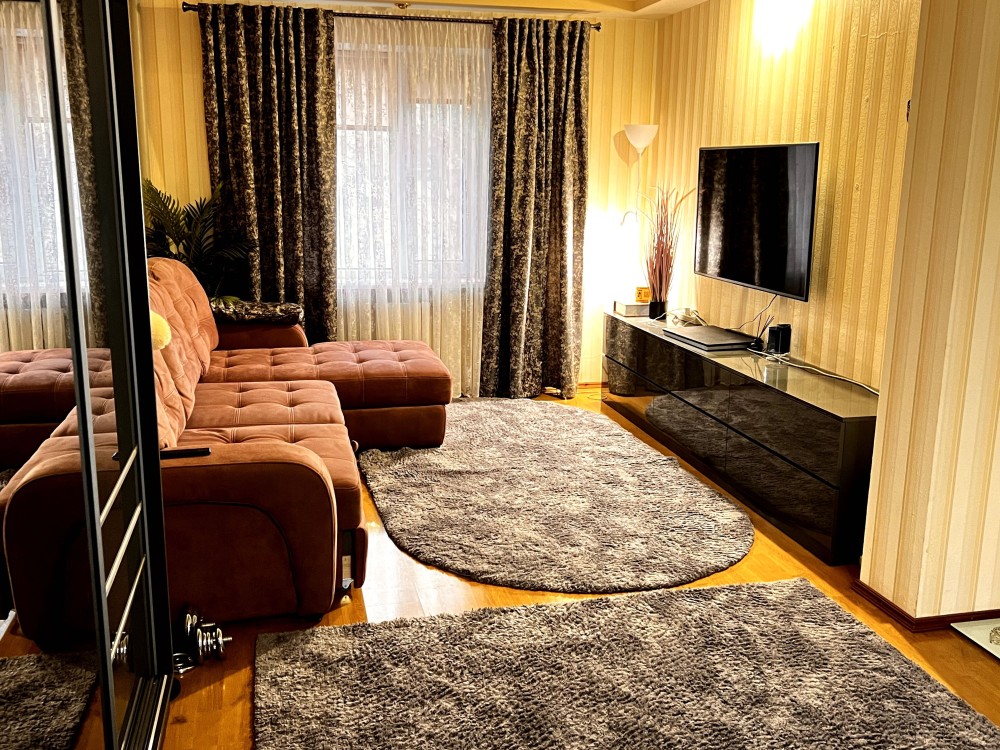 Продам велику, простору квартиру з меблями та технікою в гарному районі міста, поруч зупика міського транспорту, торгові центри, школа, садок, коледж, ринок. Квартира повністю мебльована з усією технікою, телевізор, холодильник, морозильна камера, посудомийна машина, стіральна, сушильна, индукційна плита, духова шафа, камін, два бойлери, великі кімнати, вбудовані шафи, невелика гардеробна. Простора кухня з виходом на балкол, підлога кахель, стальня теж має свій балкон. Велика ванна кімната з вікном, цоколь високий. Вся техніка нова, деяка ще на гарантії. Додаткові питання по телефону.