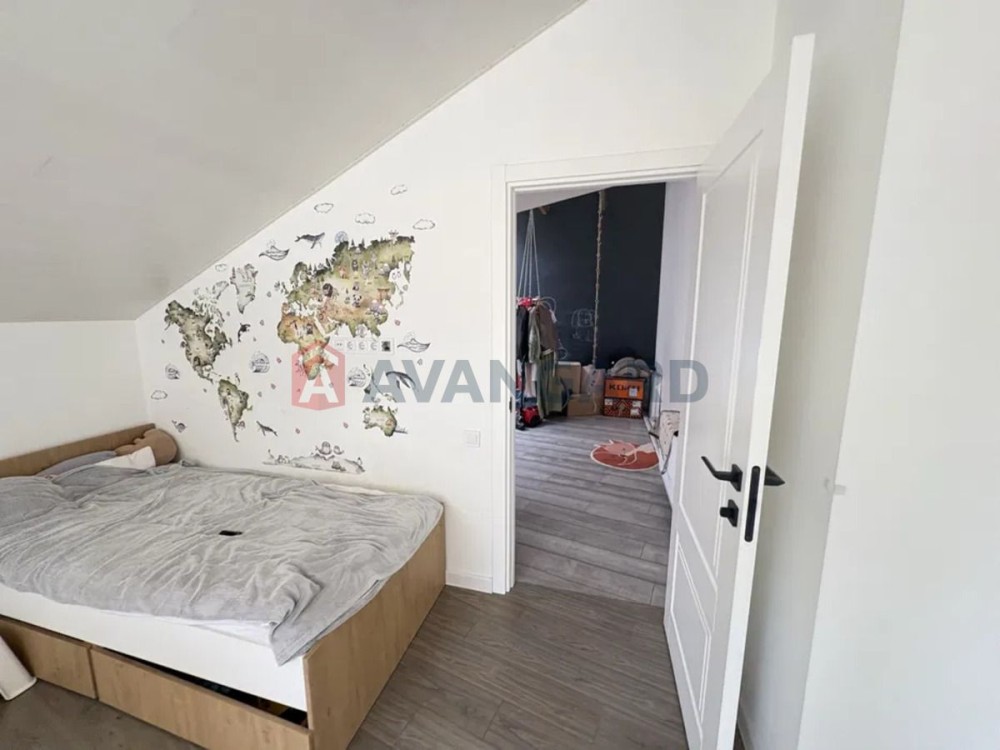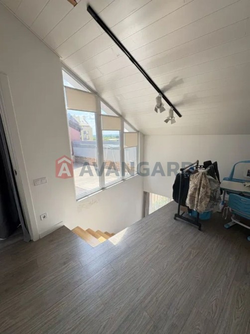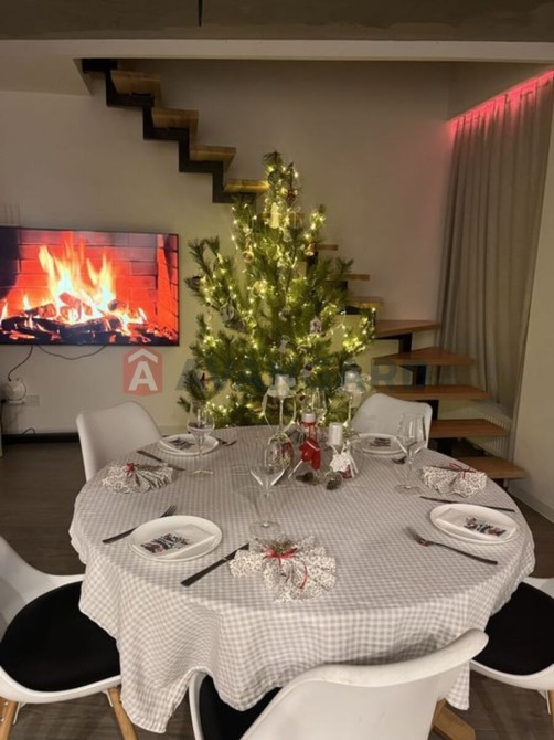 Підігрів підлоги — по всій квартирі, крім спальних кімнат (площа «теплої підлоги» близько 50 м²). Закладено всі комунікації під «розумний дім». Меблі — тимчасові; якщо купуватимете — можна зробити під себе: наприклад, освіжити фарбу й встановити натяжні стелі у кухні та зоні відпочинку (у робочій зоні вже гіпсокартон), а також у двох санвузлах. На другому поверсі — стелі з декоративних панелей з балками.