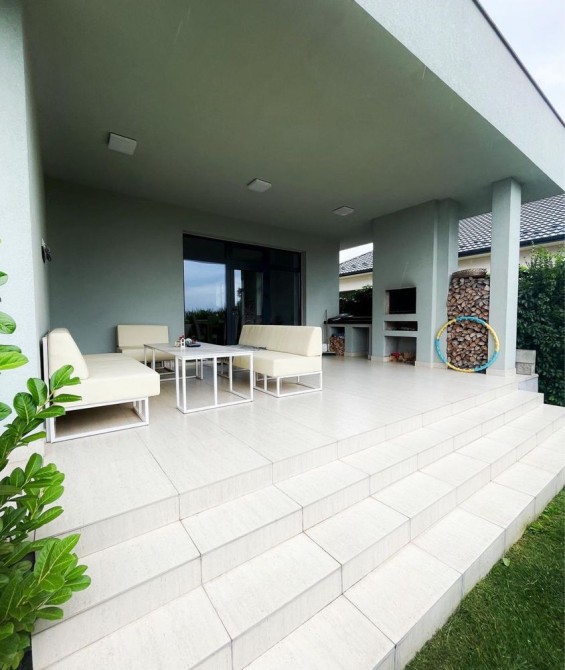 Високі стелі в будинку: 4,5 м в кухні-вітальні та 3,5 м в спальнях.