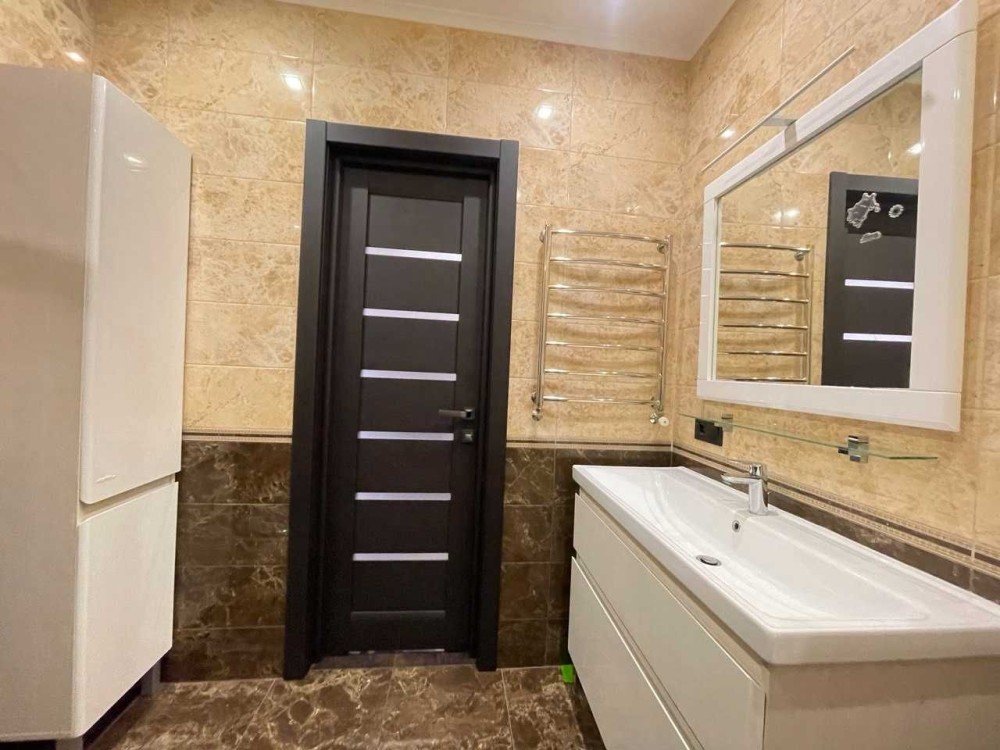 Інтер’єр виконаний у сучасному стильному стилі, з використанням високоякісних матеріалів, продуманим освітленням і гармонійними кольорами, що створюють атмосферу спокою та затишку.