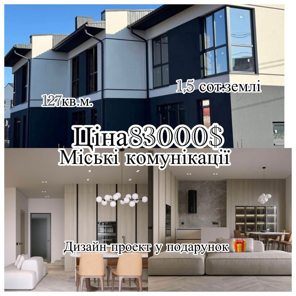 Загальна площа 127 кв.м, котедж має земельну ділянку 1,5 сотки (у приватній власності);
