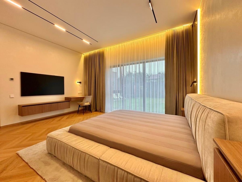 • батьківська спальня з панорамним вікном, власним гардеробом і ванною кімнатою;