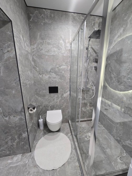 Санвузол суміжний має душову кабіну, велику раковину та дзеркало!