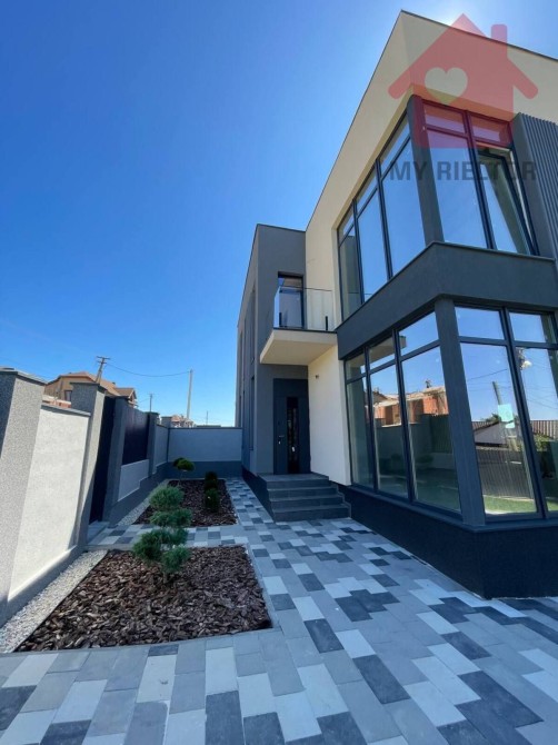 Продається сучасний двоповерховий дуплекс з ландшафтним дизайном у зручному районі, всього за 500 м від міської лікарні. Загальна площа кожної частини — 164 м², побудований на ділянці 6 соток. Простора вітальня з виходом на терасу, велика кухня, 3 спальні, 2 ванні кімнати, гардеробна, кладова, тераса та балкон — ідеальний простір для комфортного життя. Стіни з керамоблоку товщиною 38 см утеплені пінопластом 10 см, дах — мінеральною ватою 25 см. Висота стель — 3 метри, перекриття залізобетонне. Встановлено теплу підлогу, стяжку, зроблено чорнову штукатурку. Повністю виконано електророзводку, водопостачання, водовідведення та магістраль під камін. Електрика 3 фази, 25 кВт. Центральне водопостачання, каналізація, електричне опалення. Встановлено панорамні енергозберігаючі вікна з потрійним склопакетом. Дуплекс розташований у розвиненому районі з усією необхідною інфраструктурою поблизу.