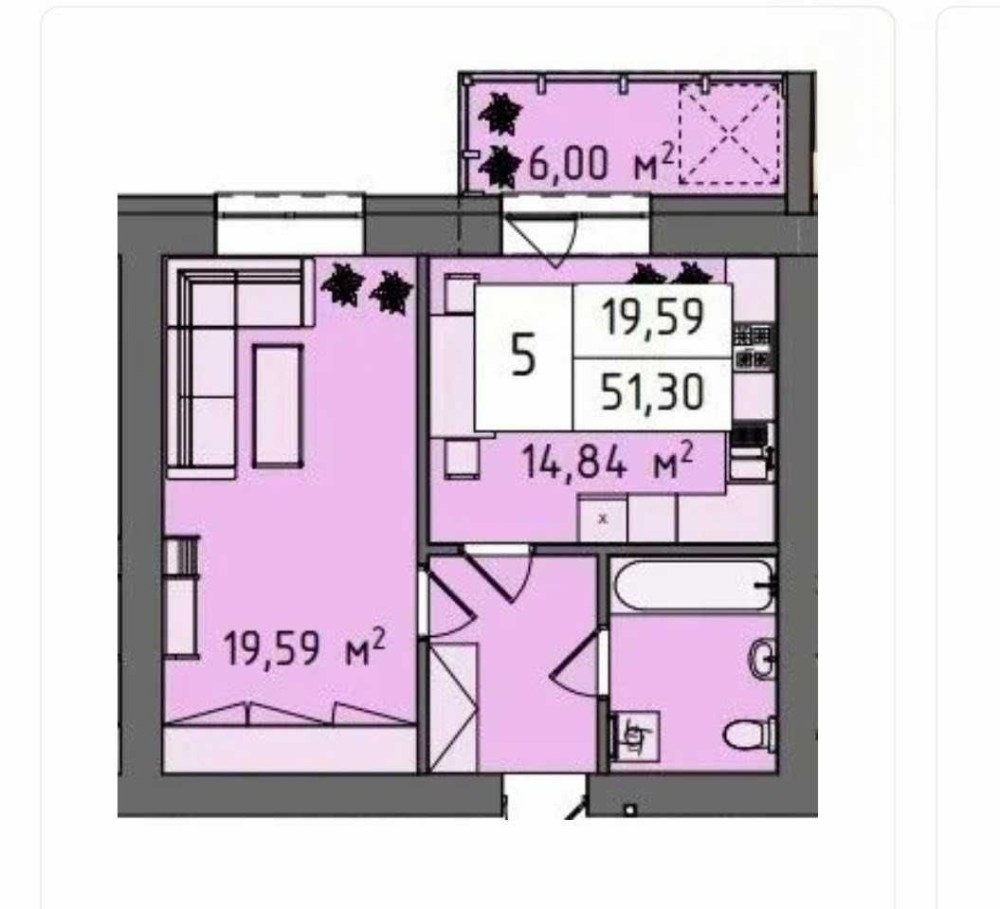 Квартира з продуманим плануванням загальною площею 51,5 м². Головна особливість — простора кухня-їдальня (15 м²), яка стане ідеальним місцем для прийому гостей.