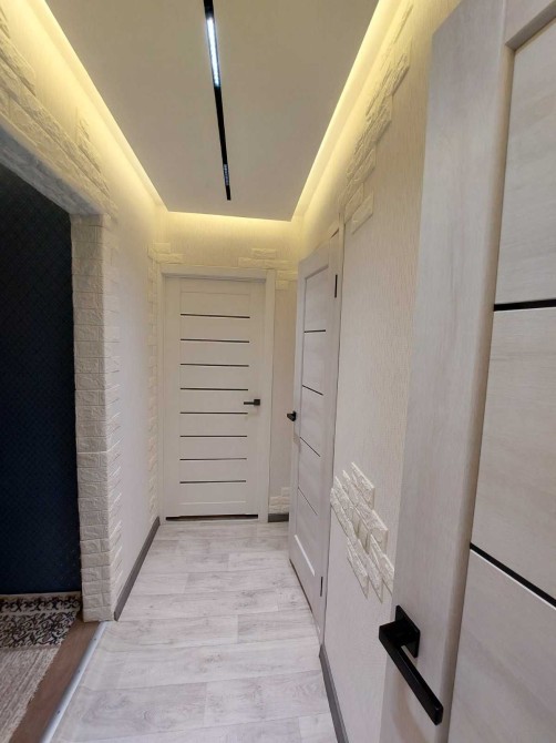 • Екологічні матеріали: стелі натяжні; підлога – лінолеум, кахель; на стінах – шпалери. У квартирі тепло та затишно, а використані матеріали підтримують здоровий мікроклімат.