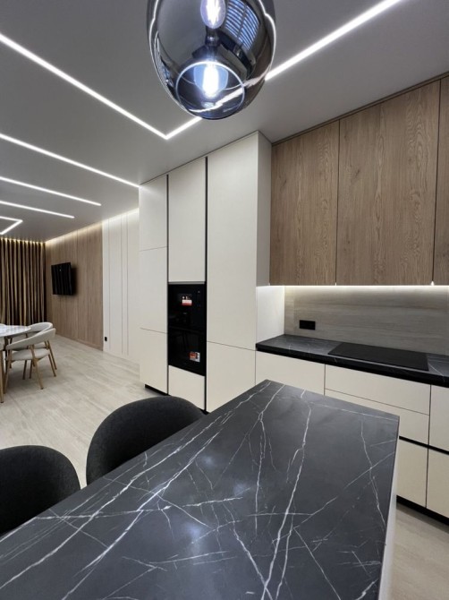 Простора кухня-студія з необхідною побутовою технікою. Панорамні вікна, що дарують чудовий краєвид на місто. У дворі сад та ландшафтний дизайн. Забезпечено безпеку: домофон, броньовані двері, відеонагляд, паркан.