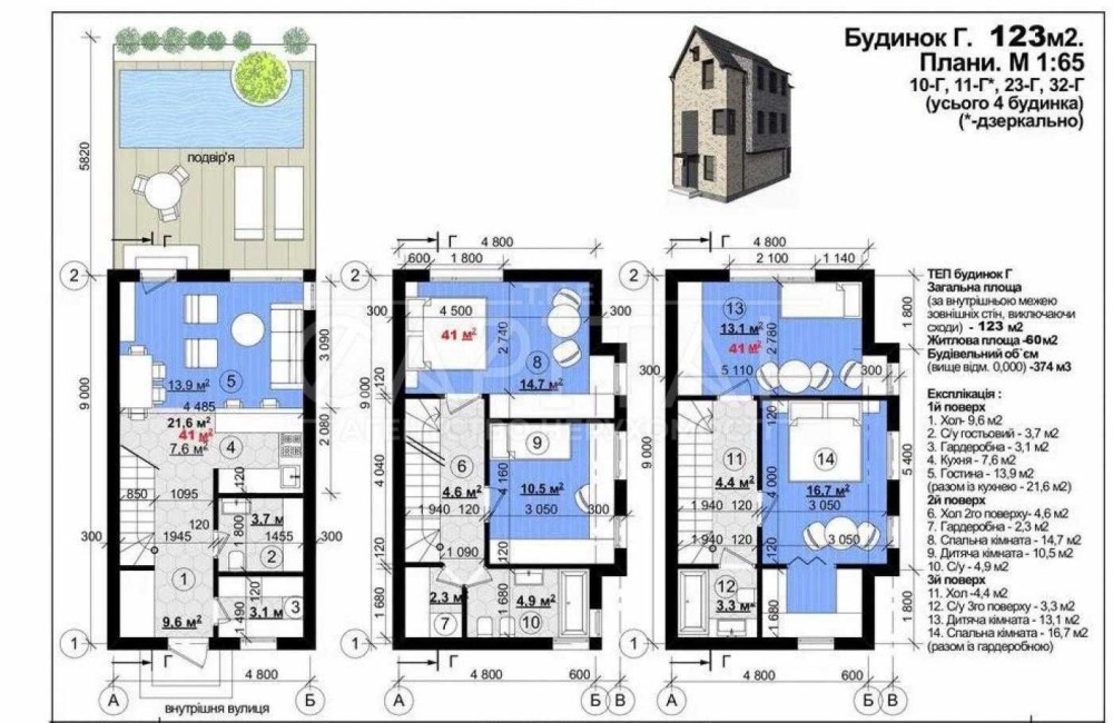 - стіни - газобетон, товщиною 300 мм., утеплені по фасаду пінопластом, загальною товщиною 100 мм.