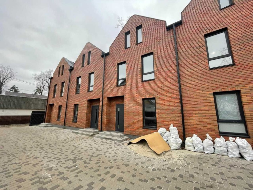 Продається таунхаус у центрі Бучі, 100 кв.м., земельна ділянка 1,2 сотки. Побудований з газоблоку (300 мм), утеплений пінопластом (100 мм), фасад обшитий клінкером, дах з металочерепиці та утепленням 200 мм. Енергозберігаючі вікна.