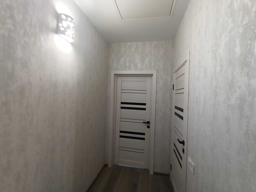 Повністю виконані внутрішні роботи. Матеріали підлоги-ламінат, плитка та леноліум. Якісні шпалери та освітлювальні прилади італійського виробництва.
