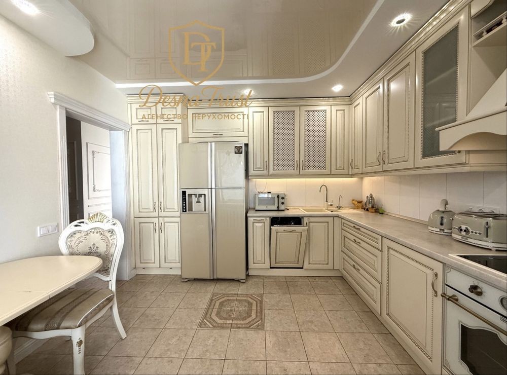 Продаж видової квартири з новим ремонтом. Повністю укомплектована технікою: дводверний холодильник, пральна машина, сушильна машина, варильна поверхня, витяжка, духова шафа, посудомийна машина, 3 кондиціонери, телевізор. Багато місця для зберігання. Є камін. Гардеробна в спальній кімнаті. Будинок 2005 року. Поруч є два дитячих садочка, приватна школа, тренажерний зал, магазини.