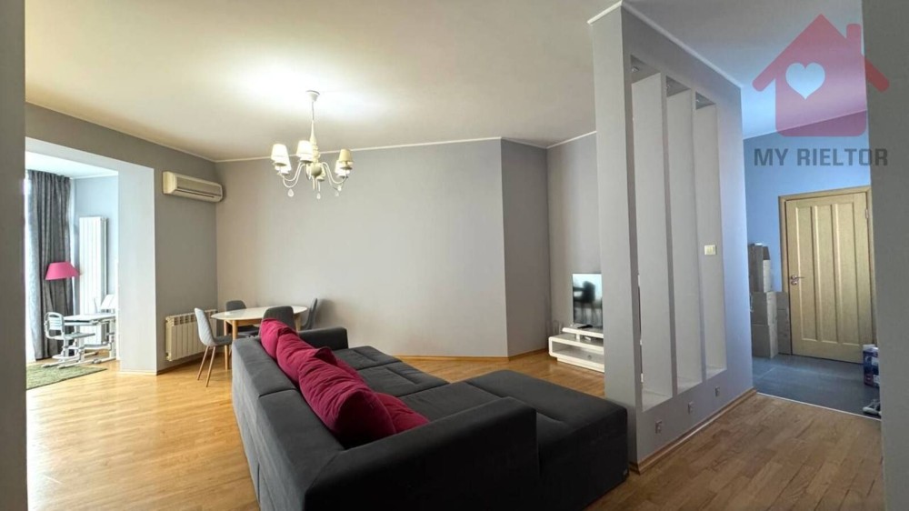 Дуже хороше планування, загальна площа 94м2, плюс засклений великий балкон і це ще 8м2, є ще один великий балкон із спальні.