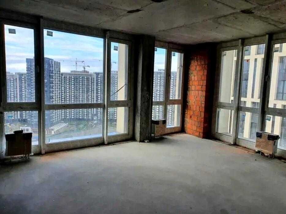 Розміщена на 20 поверсі. Площа 105 м кв, три кімнати, великі панорамні вікна. Стан- після будівельників.