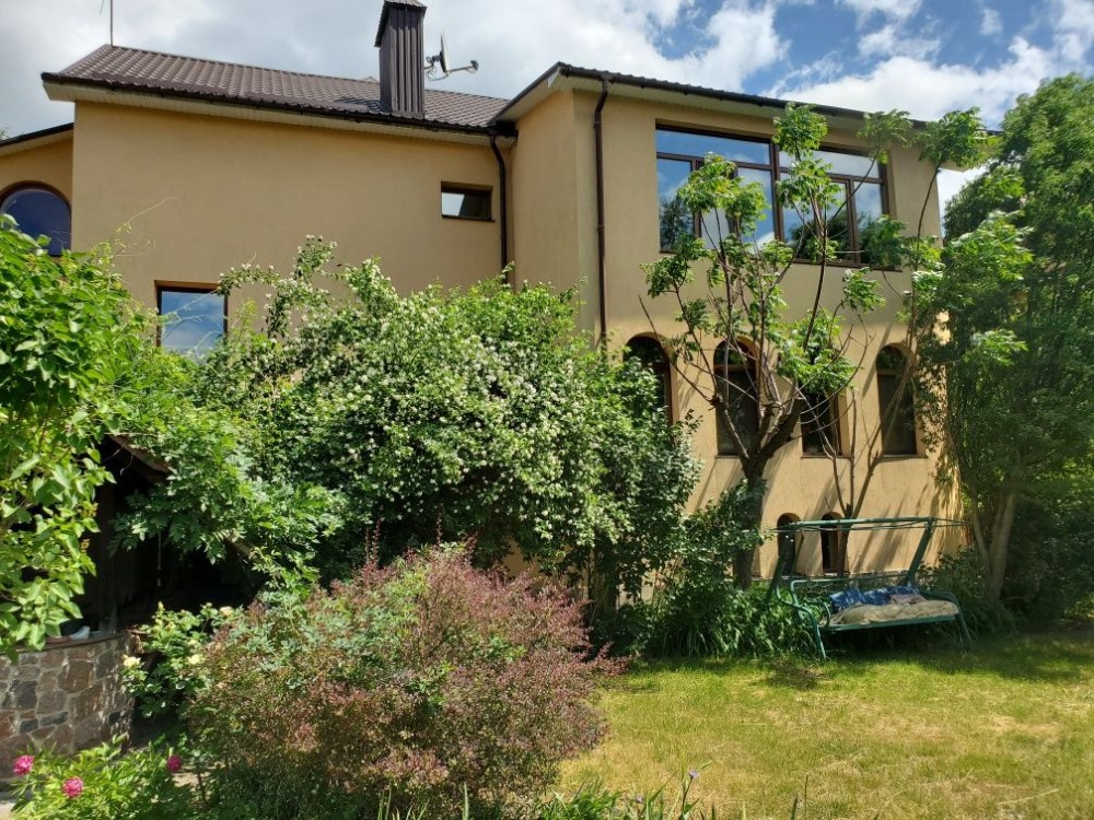 В будинку зал з діючим каміном і зимовим садом, 3 ванних кімнати, кабінет, 2 балкони, один критий, один відкритий. Також наявні сауна, бар з виходом до зони барбек`ю, тренажерний зал + дитяча зона, гараж на 2 авто, справжня піч з лежанкою + невелика зона другої кухні (для літньої людини робилось). Гарний сад з ягодами, фруктами і тд. Територія 20 соток, викладене місце під басейн.