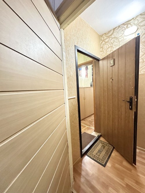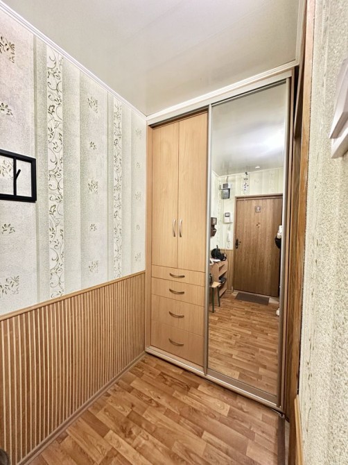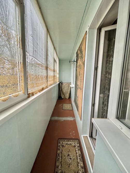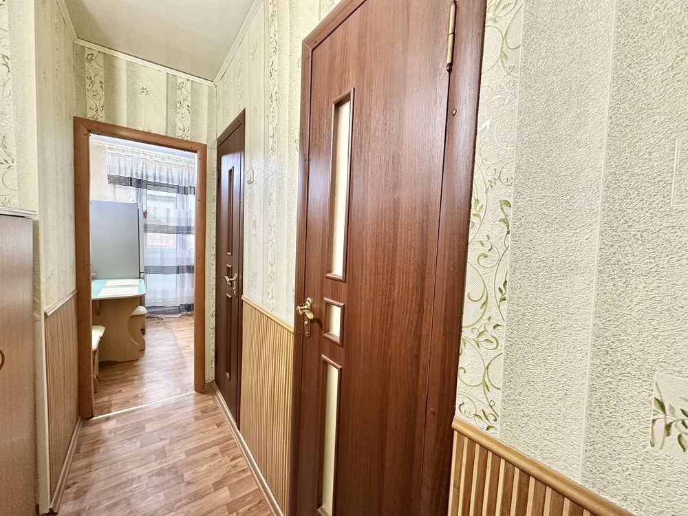 Квартира у доброму стані, має цікаве планування, великий балкон із виходом з кухні та кімнати. Метраж: загальна площа 39,9 кв.м, житлова 18,8 кв.м, кухня 8,1 кв.м. Є тамбур, добрі сусіди. Меблі та техніка - все залишається.