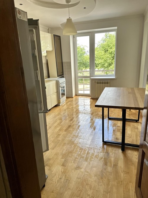 В квартирі практично ніхто не проживав. Ремонт зроблений в світлих тонах, на підлозі паркет у хорошому стані, нова кухонна мебель та техніка.