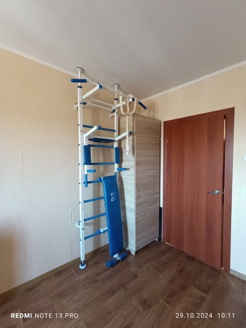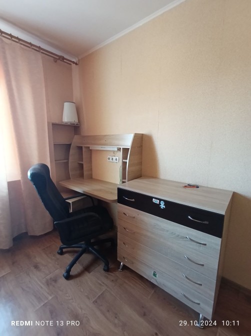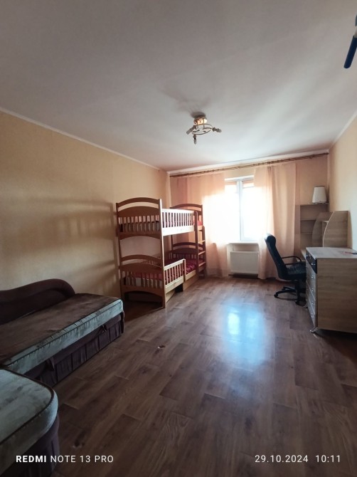 В кімнаті двоспальний розкладний диван,двоярусне дитяче ліжко, комп'ютерний стіл,тренажерний куточок. Санвузол окремий, бойлер,пральна машина, вбудована шафа.В холі кутовий диван,вбудовані меблі ,це все залишається.