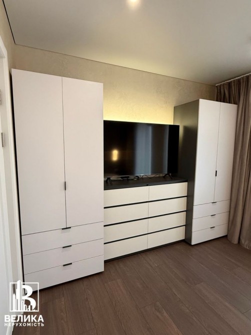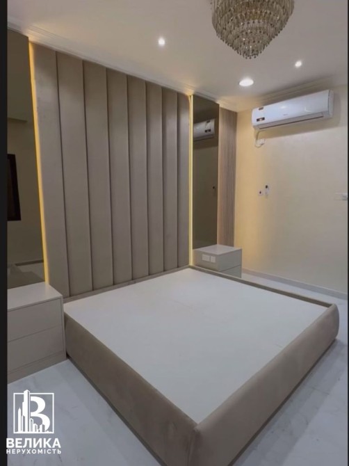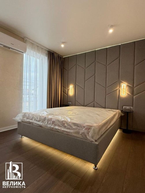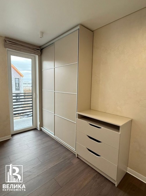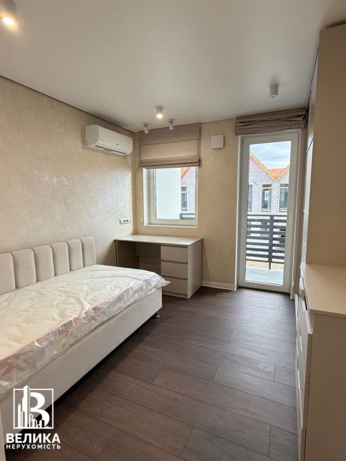 Спальня кімната з виходом на балкон, велике ліжко з ортопедичним матрасом , телевізор, кондиціонер, рекуператор, шафа, комод, black out штори з тюлями, електричний підігрів підлоги.