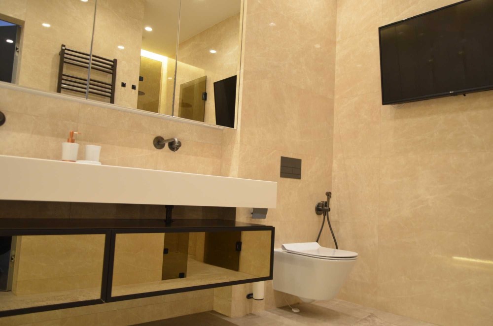 Інтер’єр: дизайнерське оздоблення з італійськими меблями та сантехнікою, натуральні матеріали, теплі відтінки, приховані стелі, плаваючі двері, зональне освітлення.