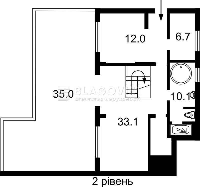 Підлога - плитка, стіни - під фарбування. Облаштована тераса 35м. Мальовничий вид на центр