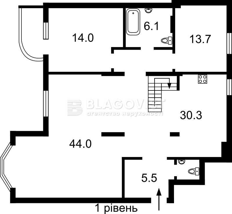 • Площадь кухни 30.3 м2