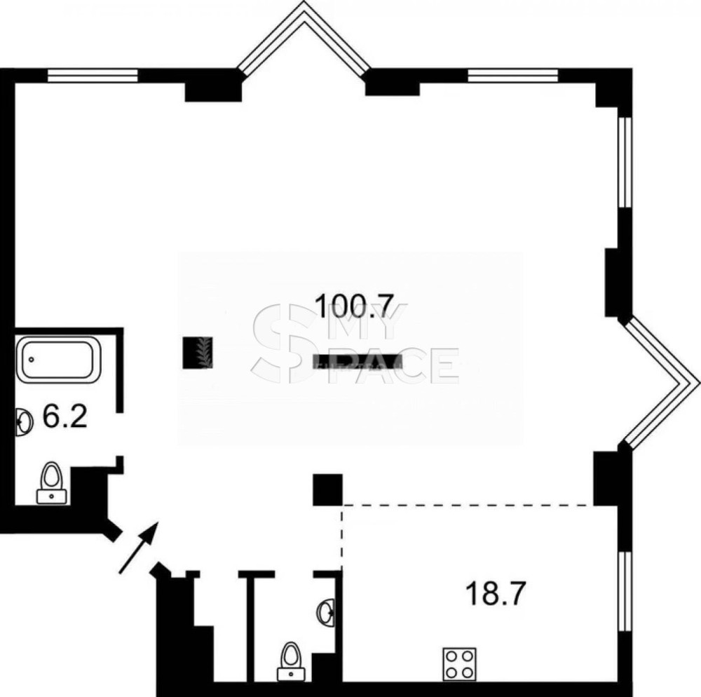 • Площадь кухни 18 м2