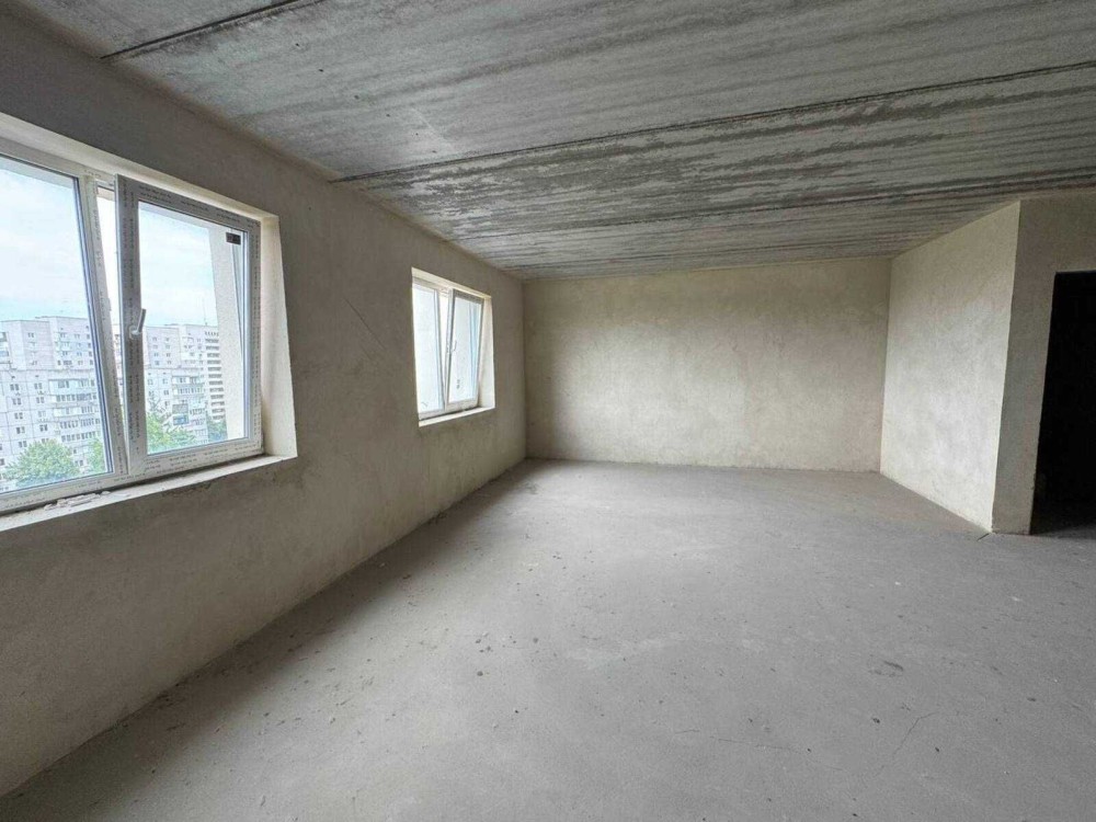 По оздобленню- лазерна цементна стяжка на підлозі,поштукатурені стіни,заведена електрика та сантехніка,металопластикові вікна.