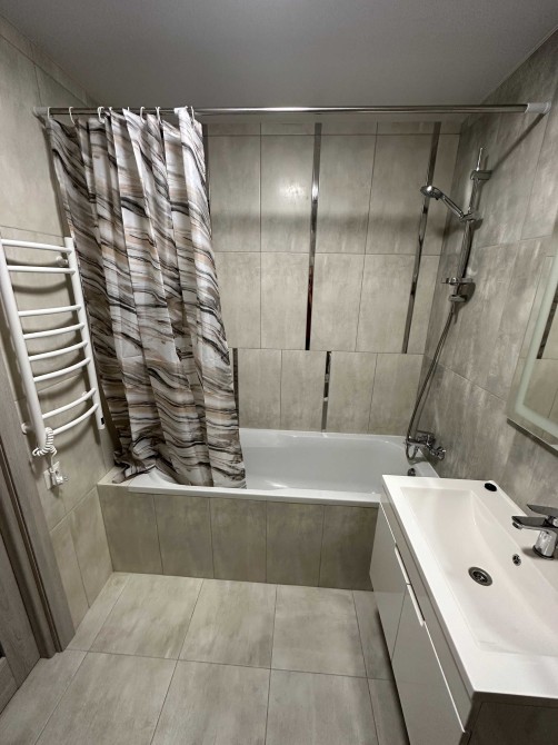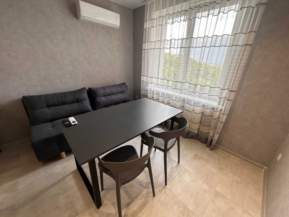 Квартира повністю готова до проживання - є всі необхідні меблі та побутова техніка (телевізор, пральна машина, духовка, бойлер, холодильник, електроплита, посудомийна машина, wi-fi роутер, кондиціонер, підігрів підлоги). Окрім ліжка для додаткового комфорту є диван на кухні.