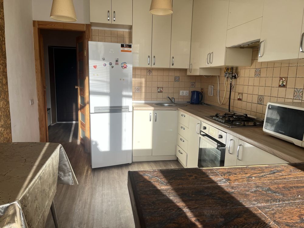 Затишна квартира на 4 поверсі 5- поверхового будинку. Сучасний ремонт. Натяжні стелі, паркетна дошка в кімнаті, ламінат на кухні та в передпокої , плитка у ванній кімнаті.тепла підлога у ванній кімнаті.Деревʼяні міжкімнатні двері. Продаж з усіма меблями та технікою. Індивідуальне газове опалення., двоконтурний котел.. Великий розкладний диван, простора шафа купе в кімнаті Добротні вбудовані кухонні меблі. Барна стійка( між кухнею та лоджією. Закрита територія. Поряд Новус, Фора, АТБ, магазин будматеріалів та господарчих товарів, кафе, піцерія, суші- бар. Маршрутка на Київ кожні 15-20 хв Недалеко озеро